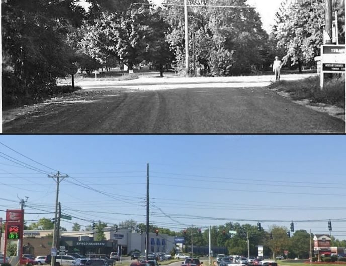 A Saturday afternoon in July and a street scene at approximately 1047 Bardstown Rd. in the Highlands, with Tewligan’s Tavern featured prominently. The THEN photo Was taken in 1984 and the NOW photo was taken in 2021. THEN 1984 NOW 2021